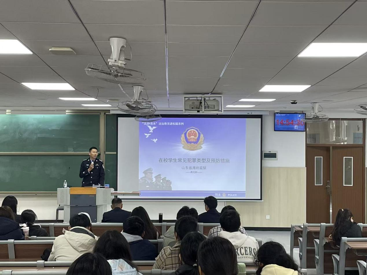 10月27日,青岛农业大学草业学院特邀山东省潍坊监狱团委副书记、2015届校友周光辉警官以在校学生常见犯罪类型及预防措施为题开展法治宣传教育,活动由学院党委书记乔磊主持,学院辅导员及全体2025级新生参加。